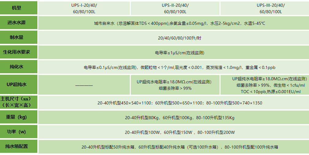 优普UPS系列超纯水系统设计简洁美观,可直接将自来水纯化为符合国标GB/T6682-2008、ASTM、NCCLS、ISO3696:1987标准中的一类水质要求,是一款高性价比的医院检验科超纯水制备系统。